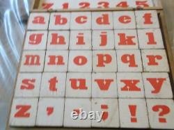 RARE ET ANCIEN JEU DE 30 CUBES ALPHABETIQUES EN BOIS DES ANNEES 1900??? Les cubes me paraissent encore en bon état (pour leurs âges, environ 100 ans). Manque la moitié de la feuille sur le couvercle et la fermeture est cassée.